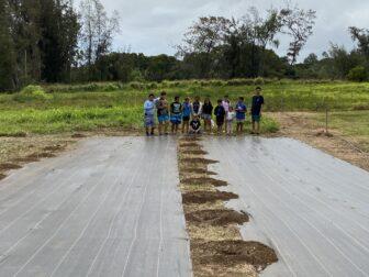 Each week, students from Kohala Unupa’a, an after-school program which instructs children and youth how to be grounded in Hawaiian culture, to weed and care for the plants.