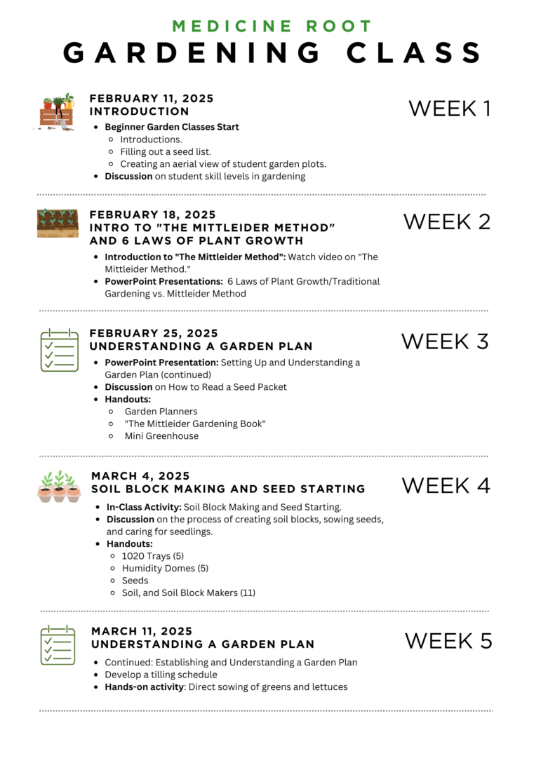 Classes begin in February. Today, on February 11, the Oyate Ta Kola Ku’s Medicine Root Gardening Program will welcome dozens of beginning to advanced gardeners to the first of 12 in-classroom training sessions.